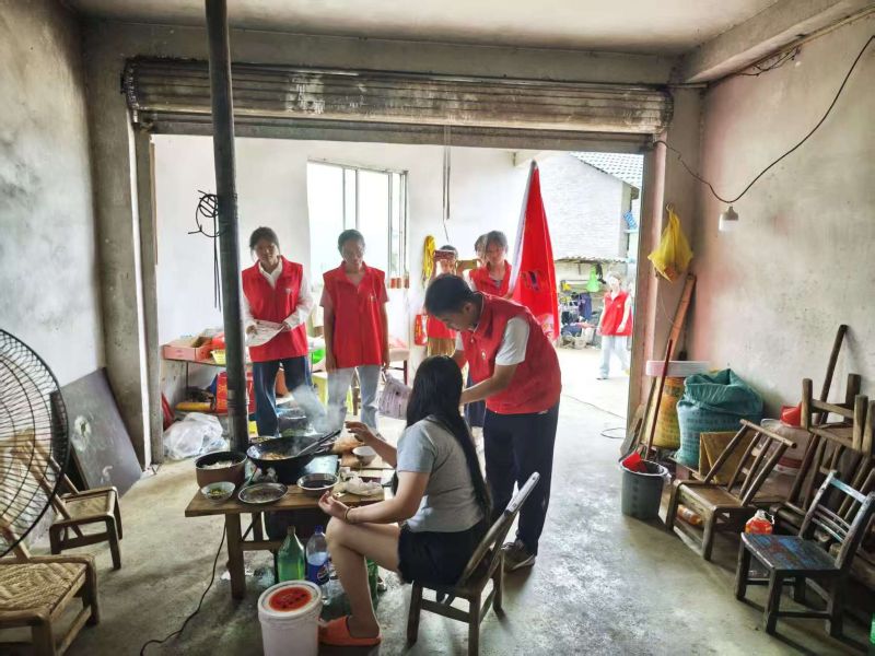 图为志愿者和当地村委现场合影。韩露露通讯员