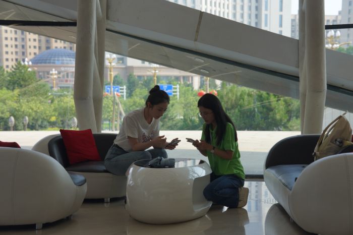 图为神木文投集团艺术团团长与实践团成员 陈静涵 供图