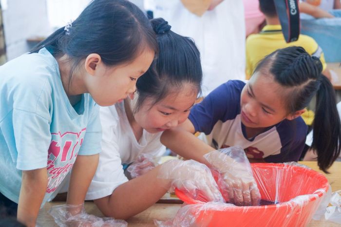 图为老师分享扎染知识+“籽籽同行”突击队摄