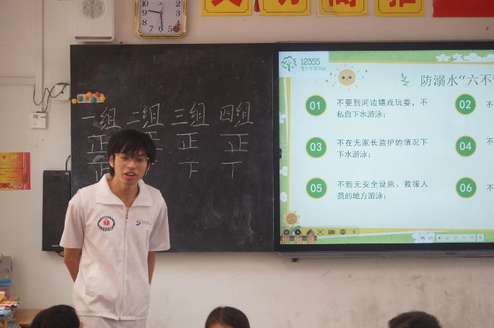 图为老师分享防溺水知识+“籽籽同行”突击队摄