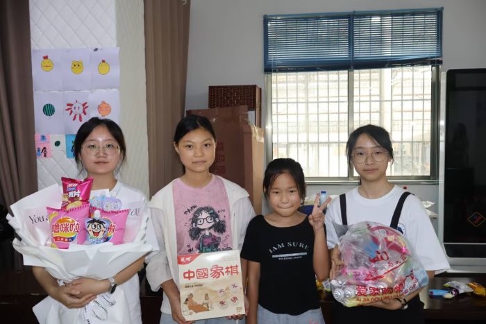 学生的反馈质朴又真挚。有家长在微信群中留言:“感谢你们的到来,孩子每天都舍不得放学,恭祝老师们前程似锦,未来可期。”在离别前,学生们悄悄送上自己用零食拼成的“心意包”和手工花束。甚至在团队返程后的17日下午,还有孩子拨打电话确认“老师们是否已经安全到家”。