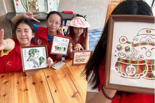这份融合不仅激活了旅游业的发展,更滋养着教育的花朵。基地作为中小学生研学的热门站点,学生在选图、配色中锤炼审美能力,在修剪、编织中理解非遗背后的文化逻辑,让美育从课堂延伸到指尖。“制作过程的每一个步骤都是对美的抉择”,莫老师在教学中强调。这位从民办学校校长转型素质教育推广者的匠人,她把传统教育的经验融入素质拓展,让非遗成为“活的教材”。