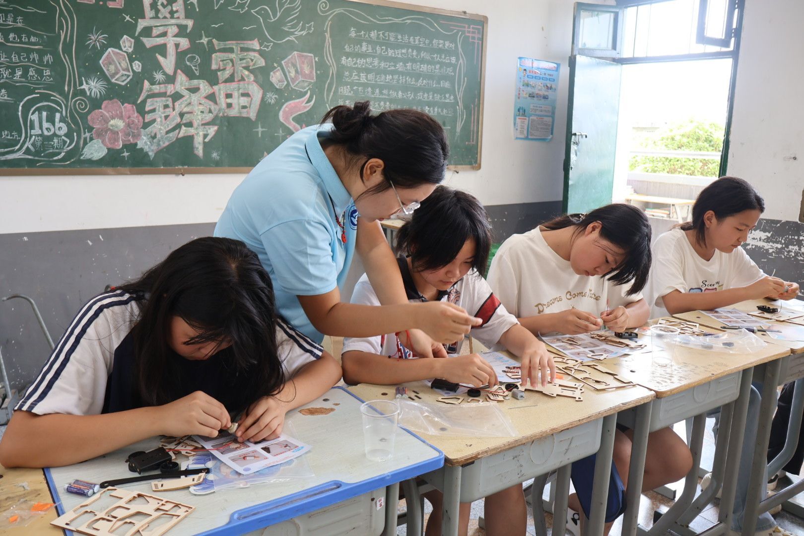 7月10日,湖南工程学院"三下乡"教育关爱服务团科普组在山枣中学开展了一场别开生面的科学实践活动。中小学生们在大学生志愿者的带领下,通过DIY电动赛车、茶水变墨水、水火箭等系列趣味实验,在动手实践中感受科学的魅力,体验智育的乐趣。
