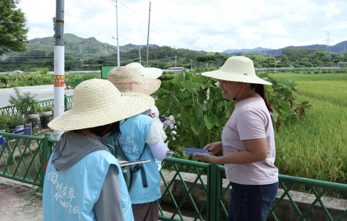 “从前绕道走的破墙,如今成了打卡点!”7月4日,在村委的带领下,心潮文化队初访关竹村。村内一条溪流穿村而过,溪上青石小桥静立。溪水倒映两岸新貌,古榕树荫下,经过翻新的老房子外墙上,新绘的竹韵主题壁画格外醒目。村民邱阿姨指着墙上的竹影壁画感慨道近年来关竹村的大变化,“古树围上石栏,危墙变为画板,连竹林也规划成了游园!”紧随着邱阿姨的脚步,倏然一片金色闯入视野里——关竹村连片稻田正值丰收前夕!饱满的稻穗低垂摇曳,在烈日下泛起粼粼波光。这般盛景,正是“百千万工程”落地的见证。村支书介绍,依托 “稻 + 菜” 轮作模式,村里不仅解决了撂荒地问题,还通过统一供种、技术指导,让亩均产值提升近 30%,带动 50 余户村民年均增收 8000 元。