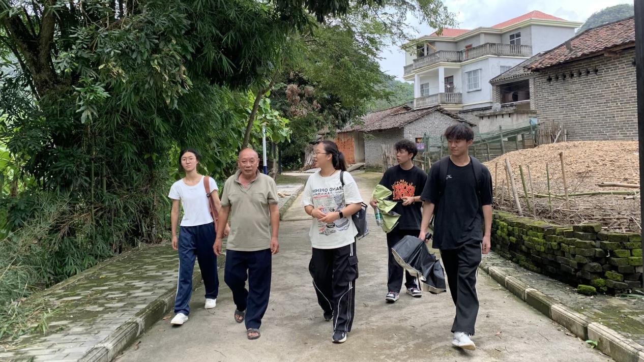 图为实践队与屯长参观花梨屯并了解桃花岛景区发展建设情况。吴慧榕摄