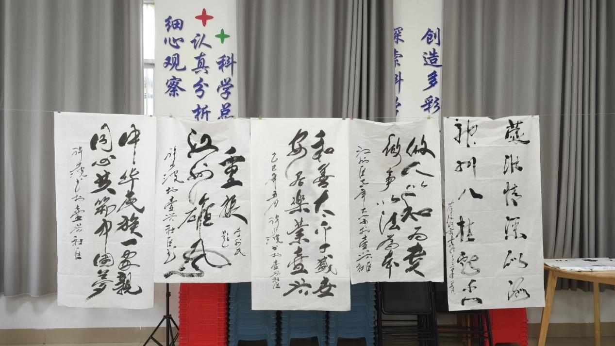 图为实践队在壶兴社区参观有关铸牢中华民族共同体意识书法字画。吕雪欣摄