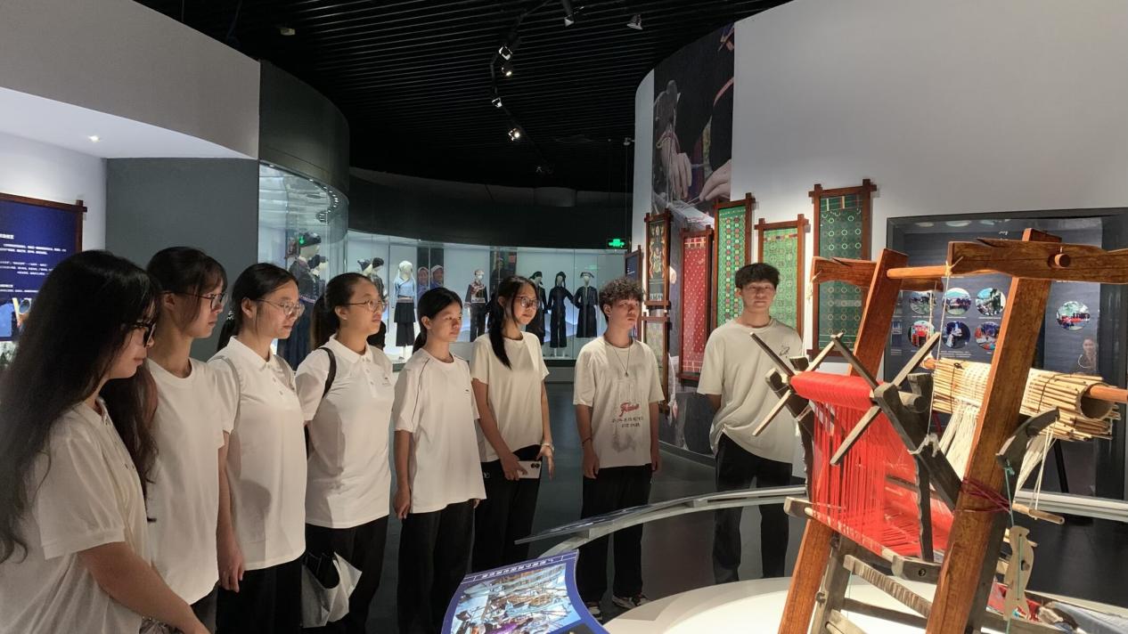 图为实践队成员在崇左市壮族博物馆参观学习传统织布机工作原理。吕雪欣摄
