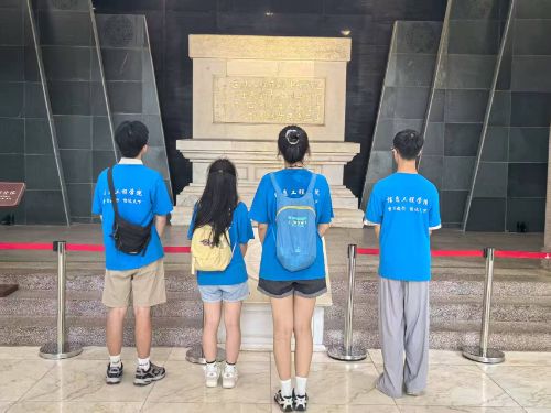 当日上午,实践队到达人民英雄纪念陈列馆。步入陈列馆,实践队员们依次参观学习了毛泽东同志题碑铭、手书题词、烈士文抄以及蔡和森、夏明翰等90多位英雄先烈们的历史照片和遗物。这些展品生动地再现了湖南人民在革命战争年代的英勇事迹和伟大精神,为队员们理解湖南革命历史提供了最直观的教材。
