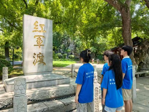 当日下午,实践队来到红军渡广场。古银杏树下,红军渡石碑前,全体团员身戴团徽,庄严肃立,表达积极向党组织靠拢和为共产主义事业奋斗终身的坚定决心。通过重走红军在湖迹渡的革命足迹,全体队员感悟到革命先辈们为了民族解放事业,不惜抛头颅、洒热血的坚定信念和伟大精神。