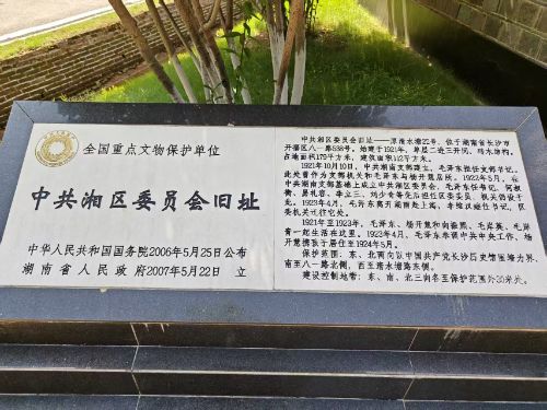 (图为中共湘区委员会旧址暨毛泽东杨开慧故居石碑。通讯员 肖伯健 摄)