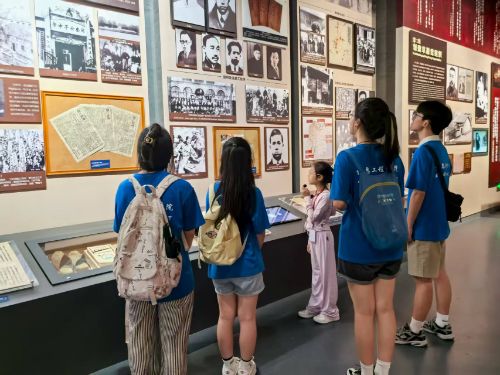 随后,实践队来到党史陈列大楼。在一名少先队员的志愿讲解下,队员们依次参观“建党先声苍茫大地主沉浮”“浴血奋斗峥嵘岁月铸丰碑”等六大主题展厅。队员们通过各展厅内丰富的文物、文献和多媒体展示,系统学习了中国共产党在长沙的奋斗历程。从新民学会的建党先声,到秋收起义的星火燎原;从抗日战争时期的长沙会战,到解放战争中的和平解放,一段段珍贵史料、一张张历史图片,全面系统地展示了中国共产党在长沙波澜壮阔的革命岁月和领导长沙取得繁荣发展的伟大历史成就。