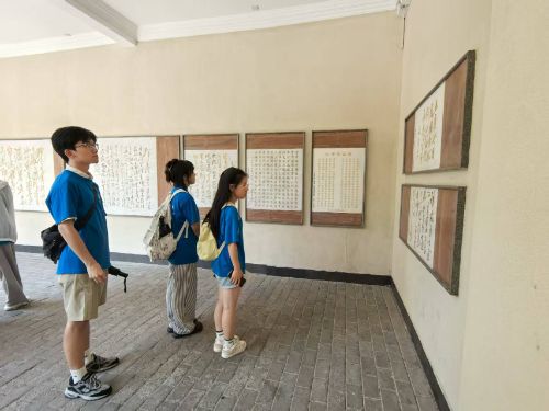 (图为实践队员参观毛泽东诗词对联书法艺术碑廊。通讯员 肖伯健 摄)