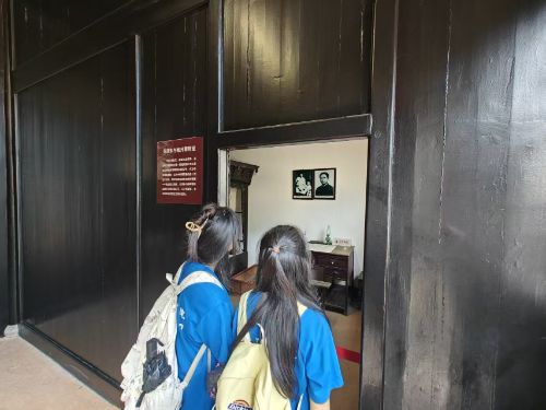 当日下午,实践队来到中共湘区委员会旧址暨毛泽东杨开慧故居进行参观。1921年,毛泽东与何叔衡等人为聚天下英才而谋事,建立了中国共产党最早的省级支部——中共湖南支部,清水塘22号成为了中共湖南支部秘密办公地和毛泽东、杨开慧的居所,其见证着中国社会的伟大变革。通过踏足这座宅院,实践队员见证了毛泽东与杨开慧这对革命伉俪的忠贞爱情和崇高的革命理想。