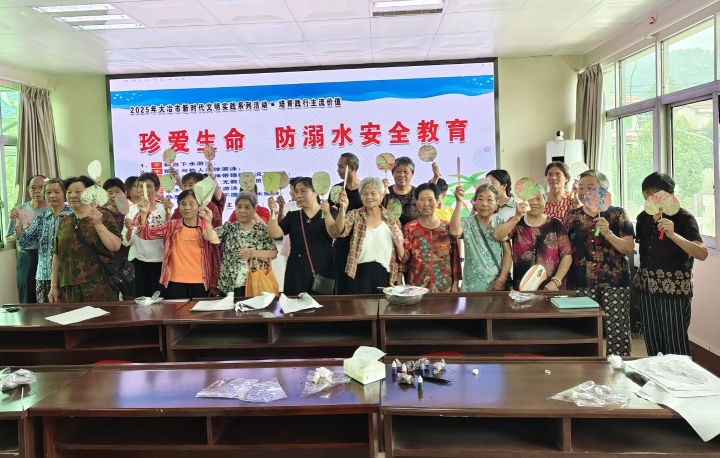 当老人们把扇子从水面拿起,原本素净的扇面上便印着自然晕染的色彩,有的像晚霞铺展,有的似繁花绽放,每个人的作品都独一无二。70岁的赵奶奶举着自己的漆扇,笑着对身边的队员说:“这辈子没做过手工,没想到这么简单还这么好看,回家要挂在客厅最显眼的地方!”这简单的两步,既保留了传统漆艺的灵动美感,又让老人们轻松感受创作的快乐,在动手过程中加深了对传统文化的亲近感。