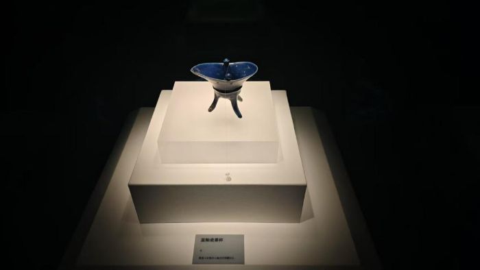 图为徽州历史博物馆的“镇馆之宝”──元代蓝釉爵杯