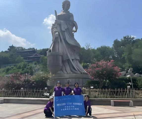 紧接着实践团成员们来到了孝园,到此感受浓重的孝道文化。孝园依托颜文姜祠的历史底蕴而建。园内,雕塑与壁画生动还原了颜文姜汲水侍亲的场景,阳光洒在这些现代艺术作品上,与古祠的沧桑形成奇妙呼应,让千年前的孝道故事有了更贴近当下的表达。调研过程中,工作人员表示,孝园以直观可感的方式,让古老的孝道故事走出传说、贴近生活。这份浸润心灵的触动,将转化为践行孝亲敬老的实际行动,让传统美德在当下焕发新的光彩。