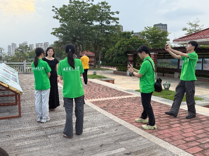 光影记录:捕捉水清岸绿的生态画卷为广泛传播木兰溪治理的深远意义与卓越成效,实践队员们扛起摄像机,穿梭于代表性场景。镜头聚焦千年古堰木兰陂——这座古老的石堰巍然屹立,无声诉说着先民的治水智慧;清澈的溪水在阳光下泛着粼光,倒映着葱郁的岸线和嬉戏的水鸟;在新建的亲水公园里,市民陈先生正带着小孙子散步:“以前洪水一来就提心吊胆,现在这里成了家门口的公园,环境好,心情也舒畅。”实践队员李鹏骏一边调整机位一边说:“我们不仅要拍下‘水清、岸绿、景美’的现状,更想通过镜头语言,挖掘这背后‘绿水青山就是金山银山’理念的生动实践,展现治理给城市发展和百姓生活带来的真切改变。”