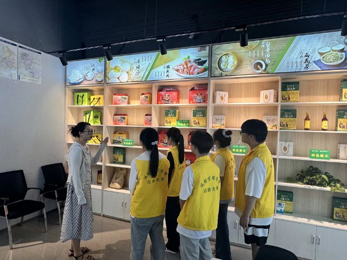 实践团队首站来到中国邮政六合区农村电商服务中心。步入中心,六合特色农产品琳琅满目,深深吸引了师生们的目光。指导老师现场讲解指出,六合邮政分公司通过整合邮政系统的各类资源的同时,发展了特色电商平台,形成区域内物流全覆盖,实现“网货下乡”、“农产品进城”双流通,为农户拓宽销售渠道、降低物流成本、增加经营收入的同时,也方便了消费者便捷选购优质农产品、享受城乡同质同价服务、参与助农公益行动。