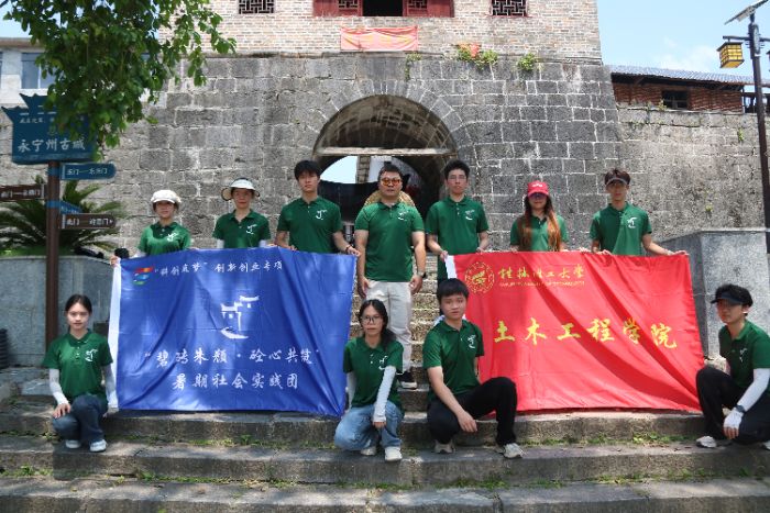 2023年7月18日至19日,桂林理工大学“碧砖朱颜・砼心共筑”暑期社会实践团赴桂林市永福县百寿镇,对全国重点文物保护单位永宁州古城墙、百寿岩石刻及穿岩古道开展调查。团队成员们通过文献研究、实地测绘、非遗访谈、数字化建模等形式,解码这座明代军事要塞的沧桑文脉,探寻古道石刻背后的中华文明密码,为当地文旅融合发展提供新思路。