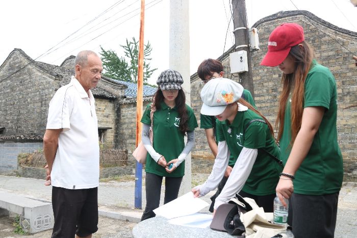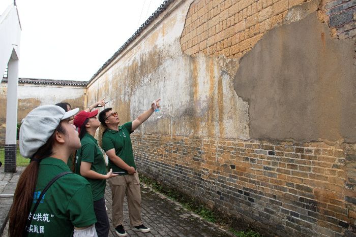 图为实践团成员研究崇山古民居墙体。林晓峰供图