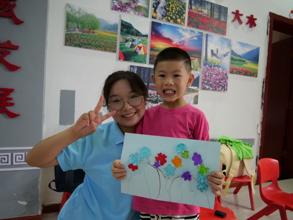 活动尾声,孩子们捧着开花的纸树,和志愿者们一起定格下这张充满笑意的合影。