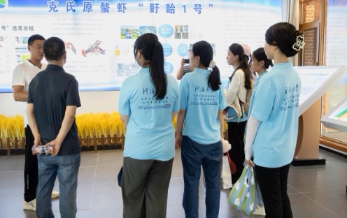 接着,实践团前往时家集村、芦沟村,与当地村委会和养殖大户等交流,对比不同养殖模式的差异化;走访创业学院、叮咚买菜工厂,挖掘人才培育与产销衔接的创新实践;参观龙虾博物馆溯源产业文化脉络,也深入全球龙虾贸易中心、大桐农贸市场捕捉流通消费动态,全面聚焦龙虾全产业发展。此外,实践团赴江苏省淡水水产研究所,深研“盱眙一号”攻关故事,从区域联动和科研助力方面进一步探究对相关产业发展的影响。