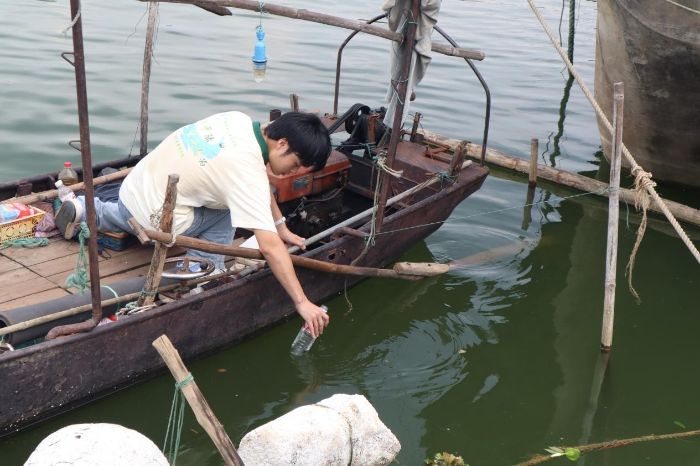 测水质:运河生态“体检” 在平塘江口,团队组建水质取样队,队员手持采样器,于河道浅滩、深水区等点位采集水样。团队负责人陈逸飞介绍,水样将送检检测酸碱度、溶解氧、重金属及有机物含量,借水质数据分析,摸清江口水质本底,为评估工程对周边水环境的影响、制定施工期水质保护方案提供依据。采样结束后,团队向村民发放水质保护宣传资料,普及生活污水规范排放等知识。