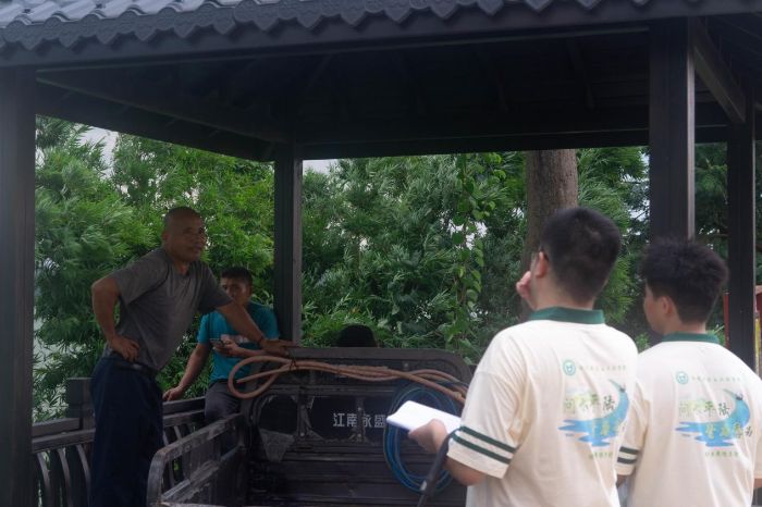 访民生:聆听河畔生活脉动 实践团队深入平塘村开展实地访谈,走进村东头聚居区、码头周边散户等多个区域的村民家庭,与老渔民、中青年务工者、村干部等不同群体面对面交流。在村民家中,新旧生活场景的对比清晰可见,曾经泥泞的村道已变为平整的水泥路,低矮的瓦房周边也兴起了规划整齐的民居。村民们谈及运河工程时,脸上不禁露出笑容,“运河工程动工后,村里修了便民路,到镇上的时间大幅缩短”,也分享了参与工程配套工作的经历。团队同步开展的问卷调查,围绕出行便利度、就业机会、生活环境变化等方面收集意见。从反馈来看,多数村民认可出行条件的改善,不少家庭有成员参与过工程配套建设或相关服务业;大家既客观提及施工期间的局部影响,也表达了对运河通航后发展乡村旅游的期待。