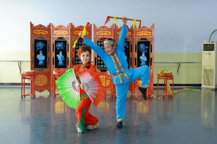 图为李月琴老师和搭档王老师展示二人台 陈静涵摄