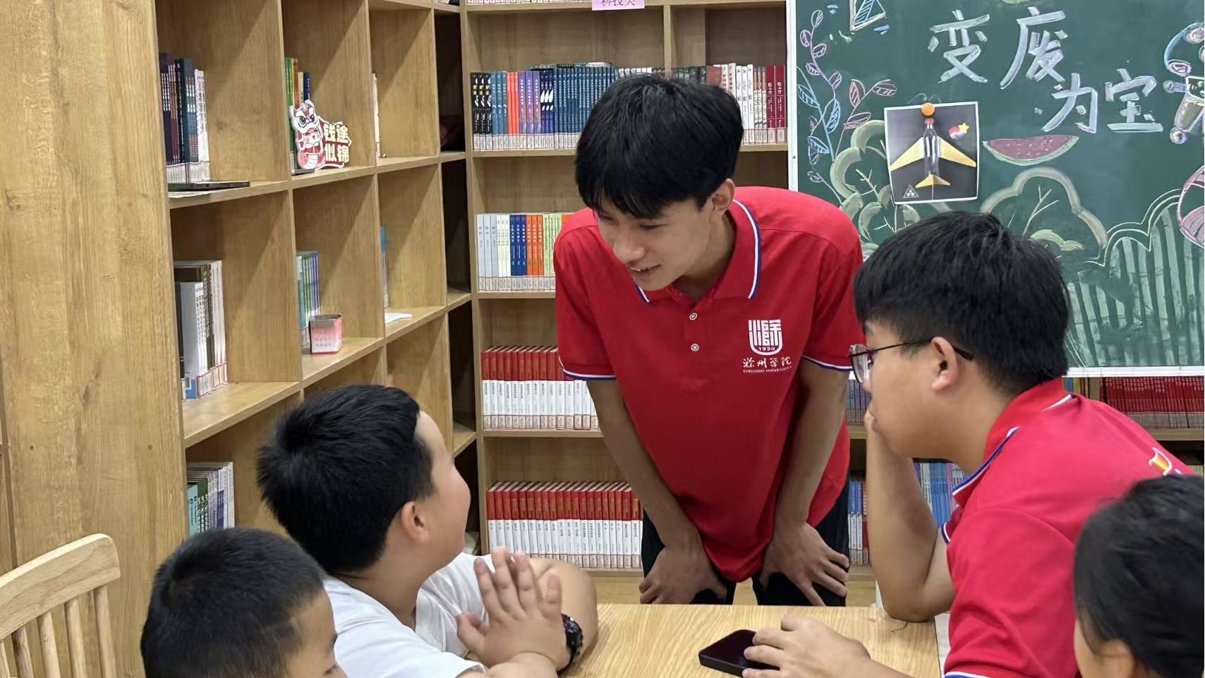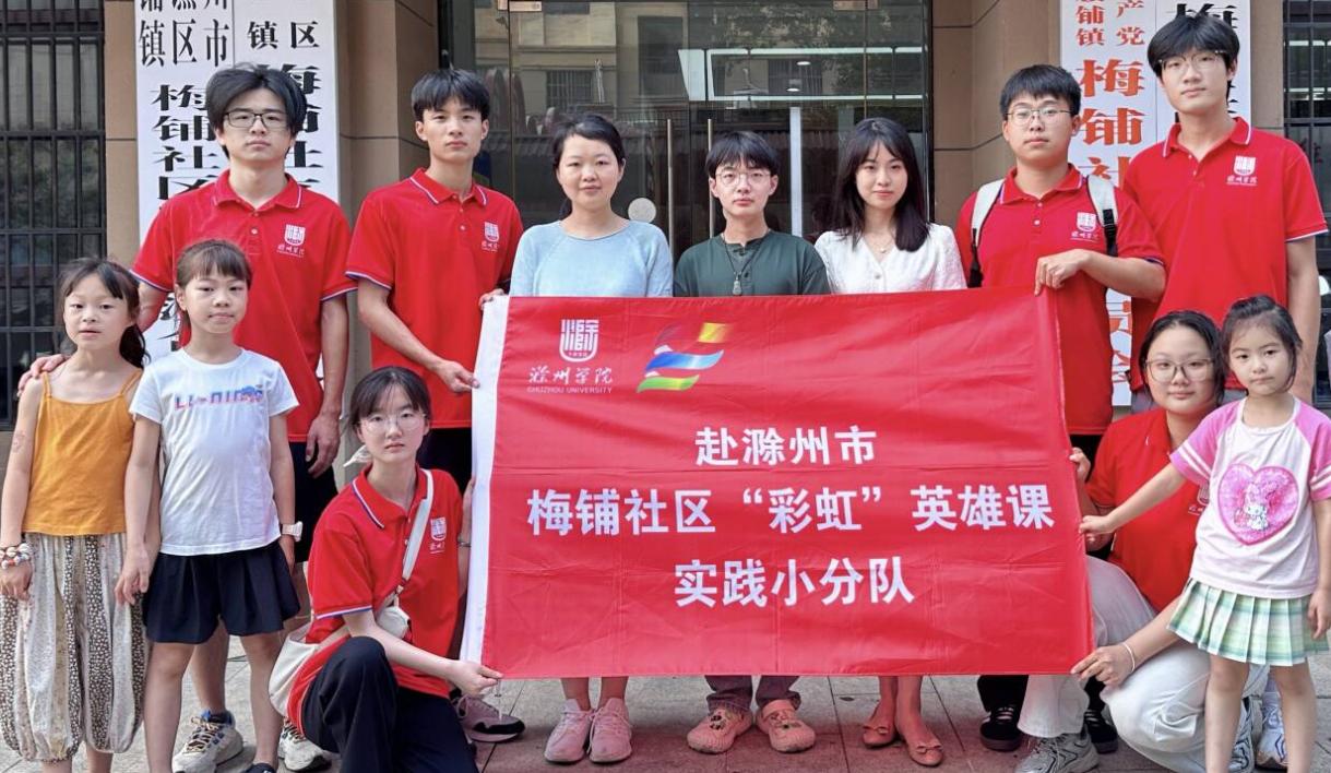 7 月 5 日,滁州学院赴滁州市梅铺社区“彩虹”英雄课实践小分队走进滁州市梅铺社区,开展以 “三阶赋能” 为核心的 “彩虹课堂” 暑期实践活动。该活动以七色光谱为象征,通过国防红、禁毒白、环保绿等多元主题课堂,将 “两弹一星” 精神、雷锋精神等融入实践体验,旨在让社区青少年在动手参与中传承红色基因、提升综合素养,探索精神传承与知识普及的可持续路径。