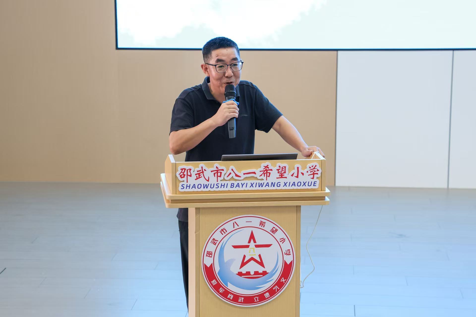 启动仪式在全场期待的目光中正式拉开帷幕。邵武市八一希望小学副校长张世贤率先登台致辞,他首先代表学校对实践团队的到来致以热烈欢迎与诚挚感谢,随后向孩子们送上了夏令营的美好祝愿:“希望你们像风一样,勇敢穿越未知的峡谷,也像风一样,轻轻托起伙伴的纸飞机,让‘我能成功,我必成功’的信念在心里生根发芽。”