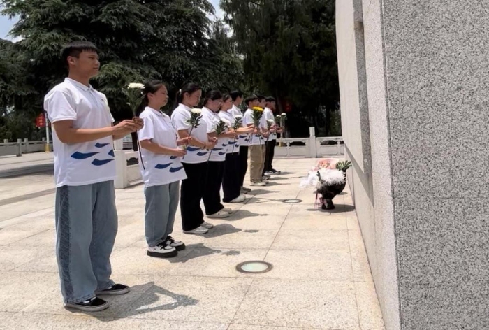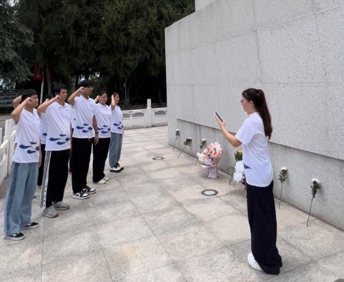 上午10点,阳光穿透郧阳革命烈士陵园的松柏,在纪念碑上洒下斑驳金辉,指尖抚过浮雕上冰凉的褶皱,百年前硝烟里的呐喊仿佛穿透时光扑面而来。成员们捧着素洁的鲜花缓步上前,花瓣在光线下泛起柔白的光晕,与碑身“革命烈士纪念碑”的鎏金大字交相辉映。默哀时,有人望见远处新城的高楼在阳光下熠熠生辉——这盛世如先烈所愿,正由青年们以知识为刃、以理想为帆,在时代浪潮中破浪前行。