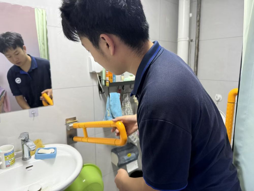 之后在院长陪同下,团队重点检查了养老院的安全设施,队员们仔细查看了养老院的各个角落。队员们主要测试了走廊扶手和卫生间扶手的稳固性,床头的呼叫器的灵敏性等,并在此过程中与院长了解相关情况,确保老人生活安全无忧,守护安全的养老环境。