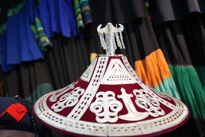 (图为店铺内陈列的帽子(曲玛尔布)。孙妮供图)