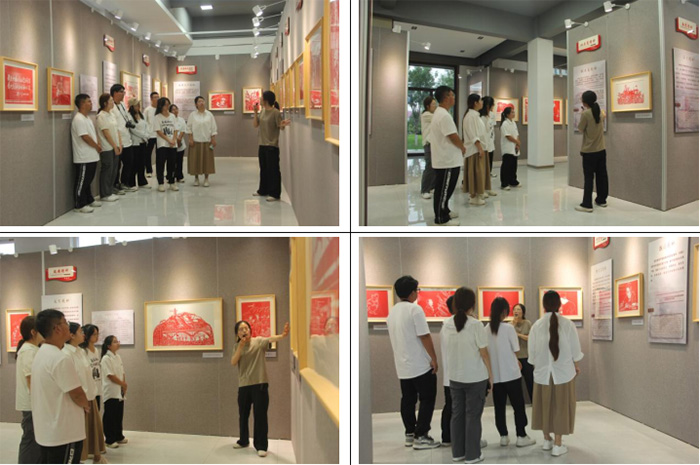 实践团成员首先怀着浓厚的兴趣认真参观了东山书院。漫步于书院的各个角落,大家首先细致参观着书院所承载的红色历史与剪纸非遗文化。一幅幅剪纸作品在灯光下熠熠生辉,其中《开天辟地谱新篇》,以剪纸定格开国大典,见证新中国诞生的庄严时刻;《热血筑天路》,用刀刻展现筑路艰辛,铭记建设者的热血付出;《黄河在咆哮》,借剪纸传递民族气魄,唱响保卫家国的激昂战歌。