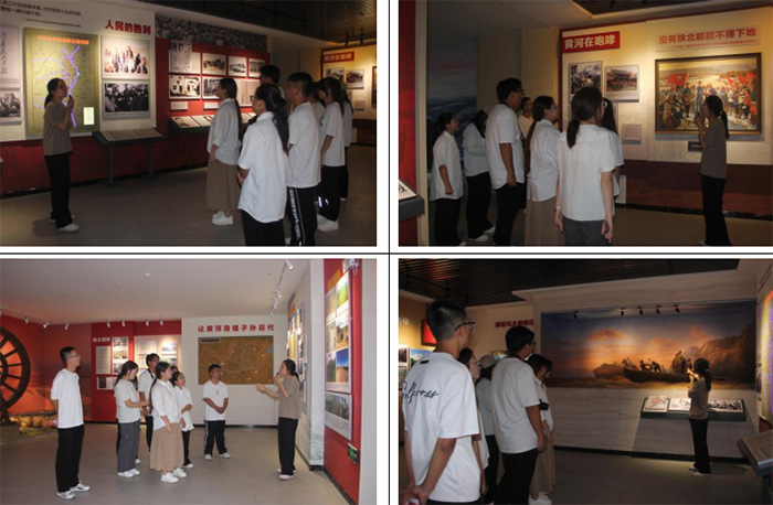 黄河文化展馆内,展板上,黄河流域图勾勒出“几”字形脉络,标注着黄河孕育出来的文化遗址。展馆内通过 “源、流、根、魂”四个方面,系统全面的讲解了黄河文化,同学们驻足展前,眉头微蹙盯着流域图上的遗址标注,有人指尖轻点玻璃默念地名,有人俯身凑近看说明文字,连呼吸都放轻了,生怕惊扰了这份厚重。