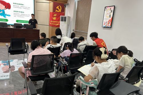 2025年7月9日上午,湘潭大学“童心映湘,剧燃红魂”志愿服务队在罗祖殿社区为中小学生开设防溺水安全课程。团队依托精细化PPT课件,系统讲解防溺水安全知识、溺水自救原则、科学施救原则及开展防溺水安全倡议。