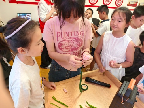 学业帮扶:志愿者化身贴心辅导员在暑期作业辅导环节,身着红色马甲的"童心映湘"志愿者们耐心地为孩子们答疑解惑。志愿者们采用启发式教学,引导孩子们独立思考,帮助解决学习难题。"这些大哥哥大姐姐教的方法很容易懂!"正在写作业的小学生开心地说道。