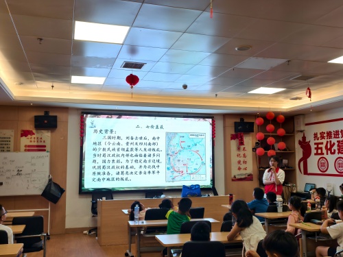 (图为服务队队员在讲七擒孟获的故事图片)