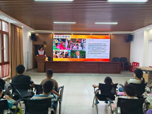 (图为志愿者讲解服饰文化图片)