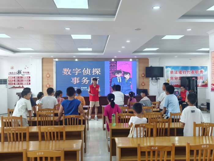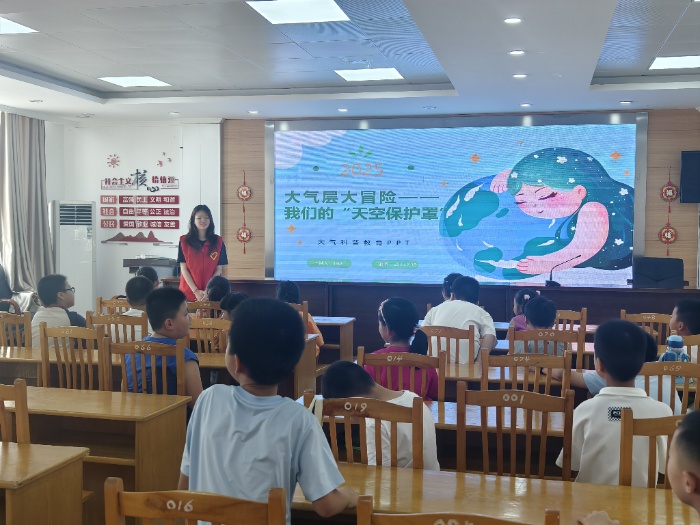 7月18日,小队成员在指导老师李天骄的带领下在扬州宝应县开展了“宏志少年”暑托班的课程。志愿者设计的互动游戏像一把钥匙,打开了趣味教学的大门。在随后的“数字侦探”数学课上,志愿者李厚霖和孩子们化身小侦探,通过“密码排列”“案件破解”等环节,在数字推理中发现数学的逻辑之美;而地球大气科普课上,“大气层大冒险”的动画演示让抽象的科学知识变得鲜活——当志愿者张琳问到“如何保护我们的天空保护罩”时,一只只小手高高举起,“少开汽车”“多种树”等答案里,藏着孩子们对自然最纯真的守护欲。