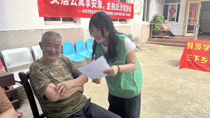 7月3日,蚌埠学院经济与管理学院暑期“三下乡”社会实践团队“财商教育同行,防诈守护家园”走进龙湖保健老年公寓,为提高老年人金融安全意识,开展了以“安居公寓享安康,金融反诈筑防线”为主题的实践活动。此次活动以丰富多样的形式,为老人们带来了一场生动实用的金融知识科普课。活动一开始,活动成员向老年公寓的老人们致以诚挚问候,对老人们积极参与活动表示热烈欢迎。现场氛围温馨融洽,迅速拉近了与老人们的距离。