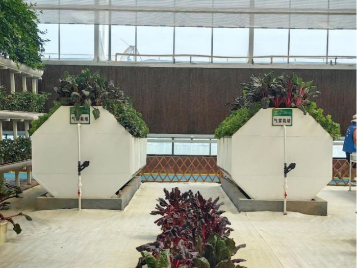 在无土栽培展厅,螺旋管道式水培、廊架式气雾栽培、荷兰桶基质栽培等技术让人目不暇接。其中鱼菜共生系统尤为引人注目——鱼池水质经净化后成为蔬菜营养液,蔬菜吸收养分后又反哺鱼池,形成"养鱼不换水、种菜不施肥"的生态闭环。"这些黑管既能喷药又能降温,温度异常时还会自动报警。"讲解员指着大棚顶部的智能设备说,通过水肥一体机、自动放风系统等数字化装备,如今一对夫妇可管理3个百亩大棚,效率较传统种植提升3倍以上。