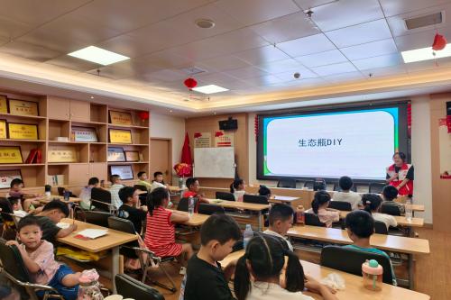 在环保实践板块,志愿者创新设计“科普+DIY”教学模式。他们通过可视化案例系统讲解生态平衡原理,全程指导生态瓶制作——从水草沙石铺设到小鱼投放,亲手带领孩子们构建微型生态系统。