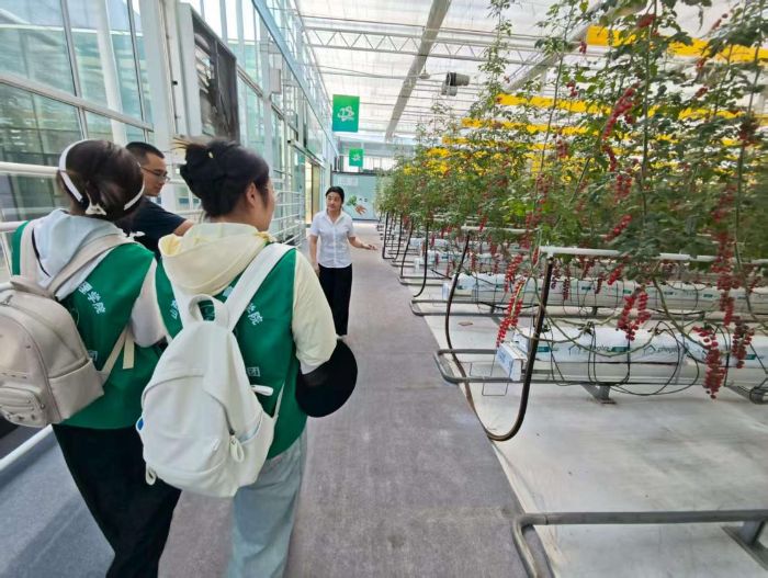 在智慧物联移动云平台前,实践团成员们被眼前的景象所震撼。园区气象、环境监测、价格趋势以及各个温室里蔬菜的生长情况一目了然,工作人员通过物联网控制中心,即可实现对园区温室的智能化管理。“数字 + 农业” 的深度融合,实现了从播种到采收的全程智能化生产种植,形成了一套完善可靠的全链条标准化、全流程可追溯的智慧种植解决方案。此外,园区还引进了荷兰、以色列等国际先进的设施农业装备,与传统日光温室相比,生产效率大幅提升 50% 以上,为农业现代化注入了强劲动力。