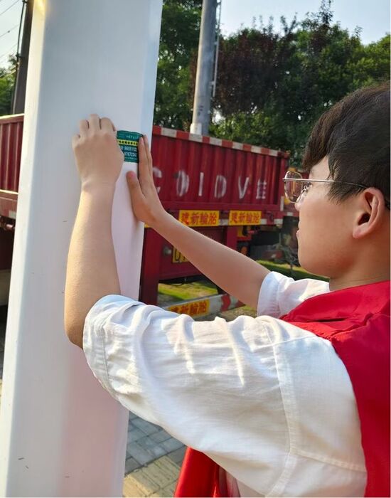 文澜青行团小队成员在清理电线杆上的小广告王艺洋供图