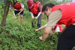 图为“心联队”队员帮助村民除草作业(李建丘供图)