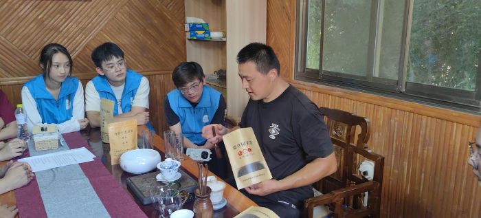 在等待过程中,尹经理详细介绍了专业评茶的工具与流程——从用于称量的天平、盛放茶汤的评茶杯碗,到记录口感的评分表,一套标准化的评茶体系让实践团成员们明白,看似简单的品茶实则是对茶叶外形、汤色、香气、滋味、叶底的系统考量。他特别提到,在国家推动茶产业标准化、品牌化发展的当下,科学评茶不仅是提升茶叶品质的关键,更是让中国茶走向世界的重要底气。
