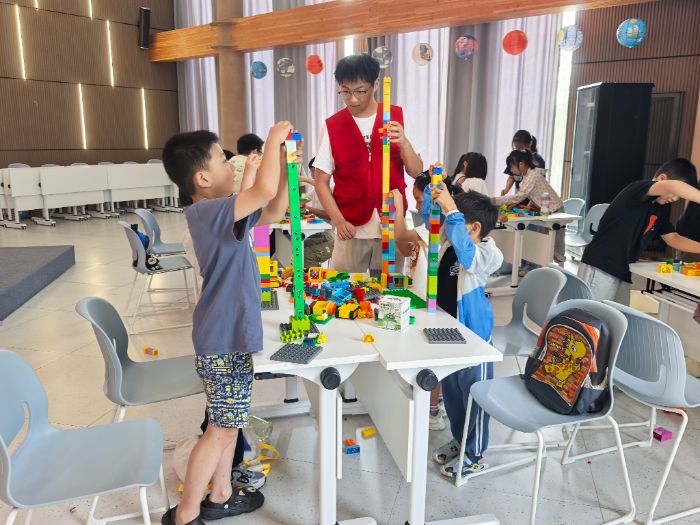 乐高搭建任创意动手实践拓思维 在乐高课程上,志愿者们准备了各种各样的乐高积木,让孩子们可以自由搭建自己喜欢的造型,为孩子们提供了一个发挥想象力和创造力的平台。实践团成员们在一旁不时给予指导和启发,鼓励孩子们大胆尝试,不仅锻炼了孩子们的动手能力,还能培养他们的空间思维能力和逻辑思维能力。