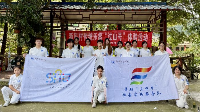 2025年7月,成都东软学院“筑梦实践团队”15名成员在指导老师带领下,在“三下乡”社会实践中走进四川省成都市大邑县鹤鸣镇新民村。2025年7月13日至7月16日,“东软青年”筑梦实践队在新民村展开了一场以“筑梦非遗,青春接力”为主题的传统与现代交融的文化守护行动。这里,不仅是普通乡村的一隅,更是承载着三百年山号回响的文化圣地。从最初"不能让祖辈的号子失传"的朴素信念,到如今仅存的三位传承人坚守。队员们在聆听古老乐器原始韵律的同时,用数字化手段为濒危非遗注入新生机,让即将沉寂的过山号重新响彻山谷,也让这项非遗技艺焕发时代光彩。